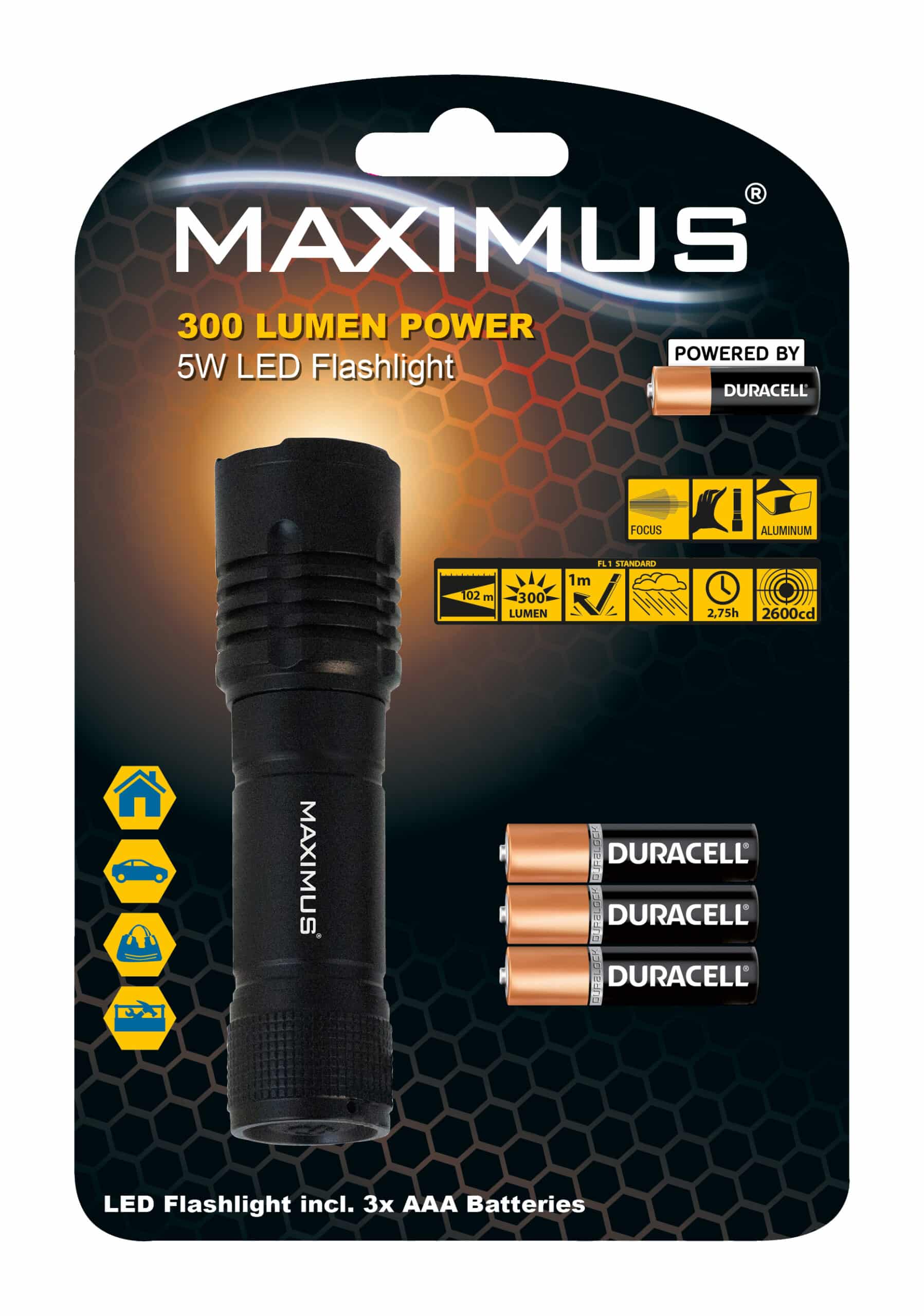 MAXIMUS – MFL026DU – Lampe Torche LED – 5 Watts – 300 Lumens – Fonction Focus